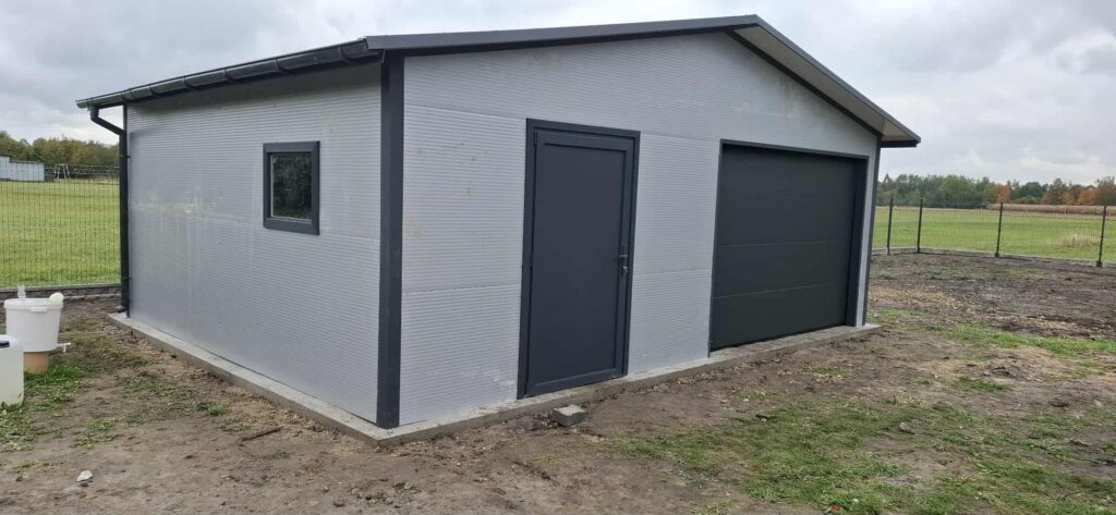 Garaże z płyty warstwowej są szczególnie polecane dla osób, które potrzebują garażu ogrzewanego, warsztatu, magazynu lub pomieszczenia gospodarczego użytkowanego przez cały rok.