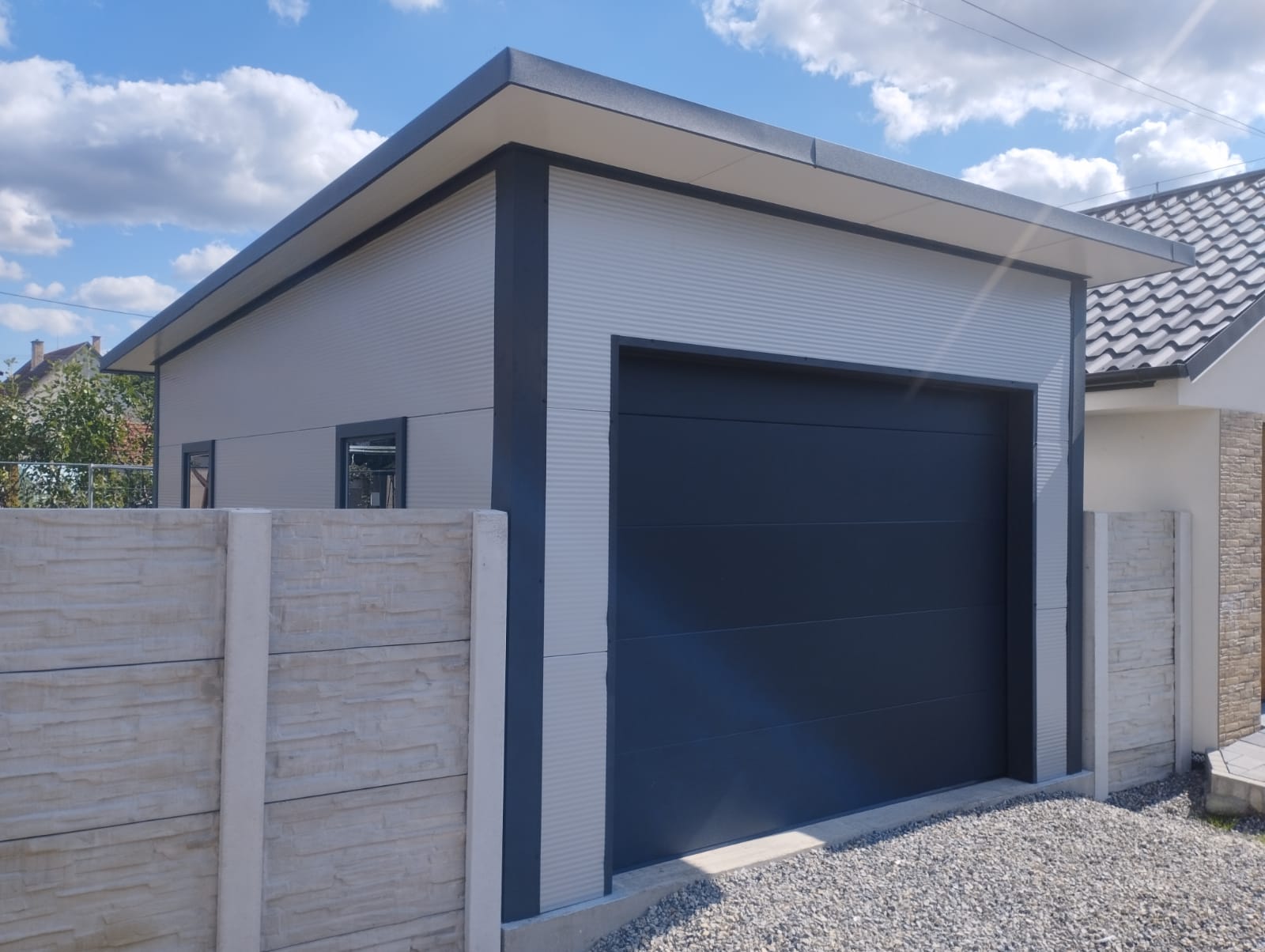 Garaże z płyty warstwowej wyróżniają się nowoczesnym wyglądem, wysoką energooszczędnością i możliwością indywidualnej konfiguracji każdego elementu.